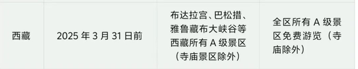 ✅免票景点:布达拉宫、巴松措、雅鲁藏布大峡谷等西藏所有A级景区(寺庙景区除外)