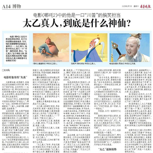 到《封神演义》,太乙干脆就连天帝称号也没了,退到元始天尊门下做一个“真人”,住所更从北极星落到乾元山金光洞,基本业务也从以前的天道运转、救苦救难,变成哪吒的专门训练师了。甚至因为乾元山金光洞在四川,连口音也带上了川普滋味。