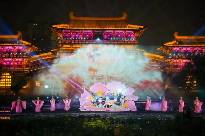 而恢弘大气的建筑只是基础,进门还会遇见:精彩纷呈的常态化演艺、穿越感十足的沉浸式体验项目、“万象神宫”明堂的复原模型展示……各种意想不到的玩法,够嗨够沉浸。