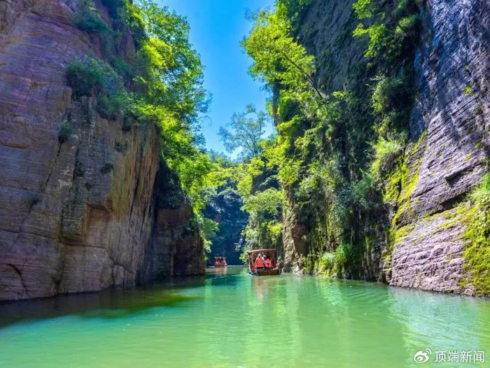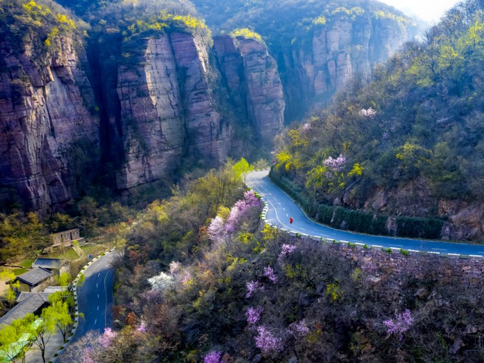 龙潭大峡谷从冬日的沉睡中缓缓苏醒,焕发出勃勃的生机与活力。峡谷内,红岩嶂谷在春日阳光的照耀下愈发夺目,仿佛是大自然用岁月精心雕琢的艺术品。山间溪流潺潺流淌,清澈见底,溪边嫩绿的小草和五彩斑斓的野花肆意生长,仿佛在向游客展示着生命的顽强与美好。