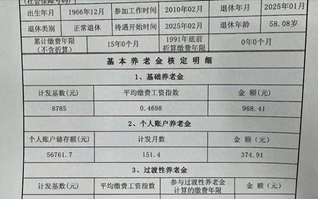 有网友在分享了一张养老金核定表,在今年1月办理退休,退休年龄是58.08岁,就算是58岁1个月,计发月数是151.4,这个是怎么算出来的呢?
