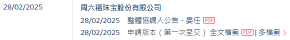2025年2月28日,来自广东深圳的周六福珠宝股份有限公司 Zhou Liu Fu Jewellery Co., Ltd.(简称"周六福”)在港交所递交招股书,拟在香港主板发行H股上市,并申请全流通。这是继其于2024年6月27日递表失效后的再一次申请。