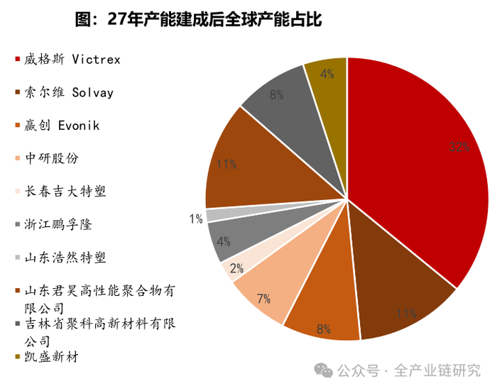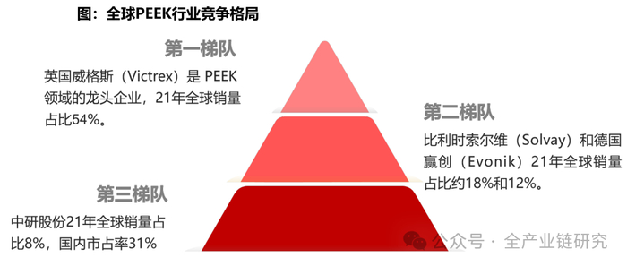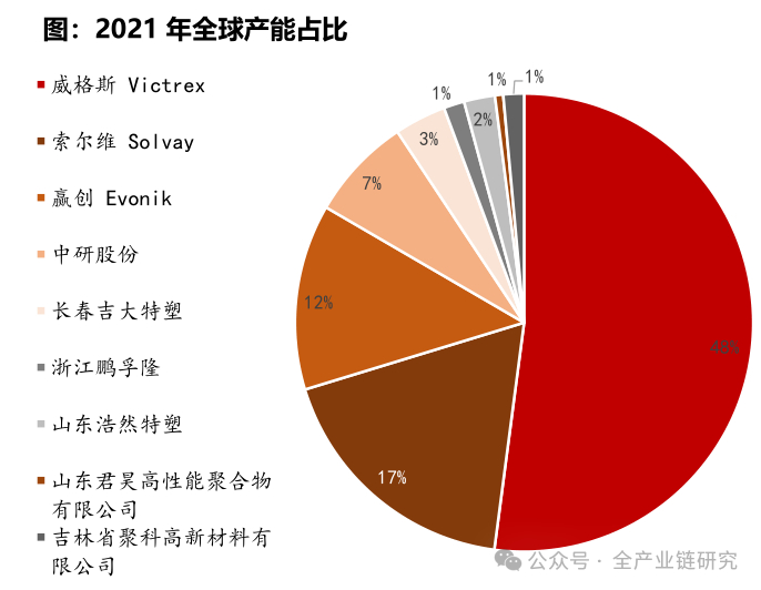 1)全球龙头:威格斯(全球最大PEEK生产商,产能7150吨,约占21年全球总产能48%);索尔维(产能 2500 吨);赢创 (全球第三大PEEK生产商,产能为1800吨产能)。
