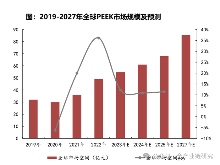 2024年全球PEEK市场规模为61亿元,2027 年将达85.4亿元;