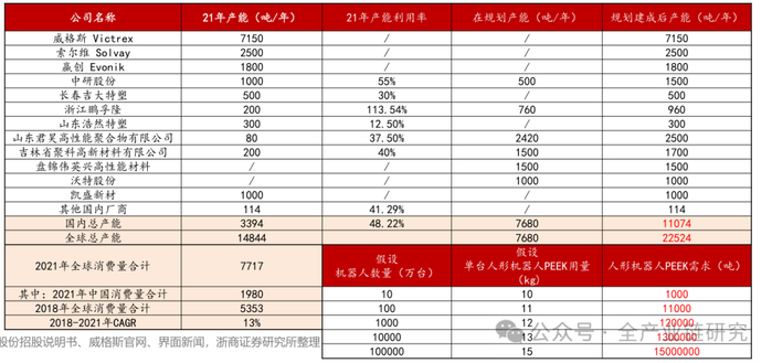 国内:21年中研股份销量份额8%(全球第4),沃特股份、凯盛新材、鹏孚隆、吉大特塑、浩然特塑、山东君昊等相继进入。我们认为,未来如人形机器人加速放量,国内企业的降本能力、快速响应能力有望加速国产替代,实现份额突破。