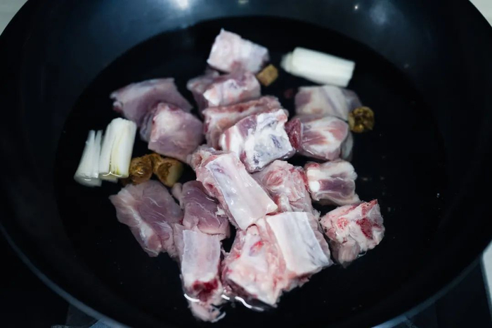 肉类食物需要冷水下锅,有助于撇去血沫。如果沸水下锅会让肉表面的蛋白质变性,最外层直接熟了,导致里面的血水出不来,达不到去血污的目的,口感也不好。
