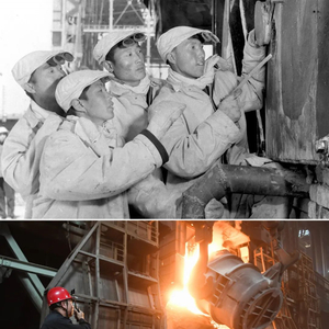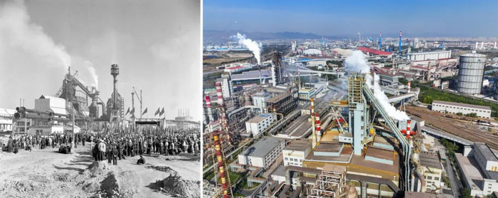 ▲左图为包钢一号高炉正式投入生产,工人在一号高炉工地举行庆祝大会(新华社记者陆轲摄,1959年9月26日发);右图为2024年10月12日拍摄的包钢七号(左)和八号高炉(新华社记者连振摄,无人机照片)。