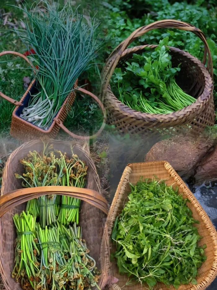 小溪流的滩涂上,一丛丛鲜嫩水芹菜让人垂涎欲滴。其可凉拌、可清炒,根根爽脆,口口鲜,是不可多得的清甜野菜。