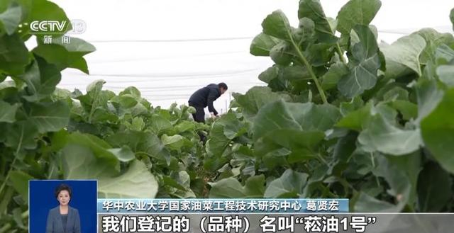 华中农业大学国家油菜工程技术研究中心 葛贤宏:这一片就是我们培育的新的“板蓝根青菜”。我们登记的品种名叫“菘油1号”,这是通过油菜和板蓝根体细胞的融合,然后再回交,再不断选育下来的。