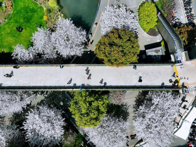 核心看点:高架桥下的染井吉野樱如粉云漫卷,列车穿梭花海间,仿若驶入童话世界。拍照角度丰富,在人行阶梯上可近距离拍摄人物与樱花的同框。晚高峰时路灯点亮樱花,成为路上的一抹亮色。