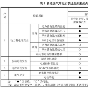 记者了解到,车辆年检新规最大的变化是,动力蓄电池安全充电检验和电气安全检验成为必检项目。同时,将对驱动电机、电控系统以及用电安全等安全特性进行检验。