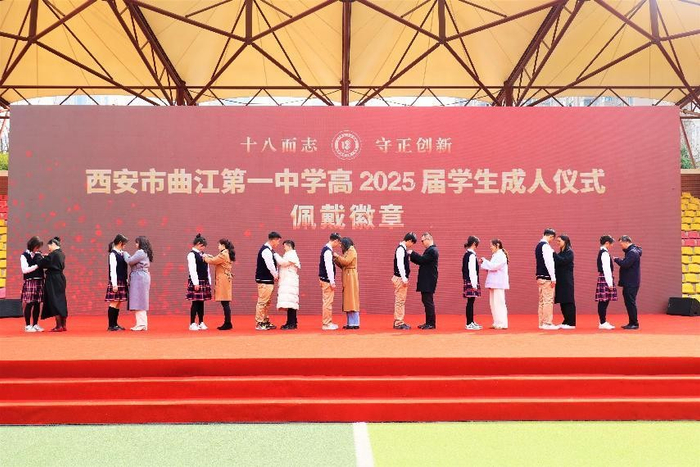 2025年2月28日上午,西安市曲江第一中学在学校操场举行高2025届学生“十八而志,守正创新”成人仪式,以庄重的仪式祝贺高三学生法律意义上“成人”,以深情的祝福为同学们冲刺高考加油助威。曲江一中校长陈勇刚、副校长刘公潜、学校中层领导、高2025届全体师生家长共同见证了同学们18岁的华丽蜕变。