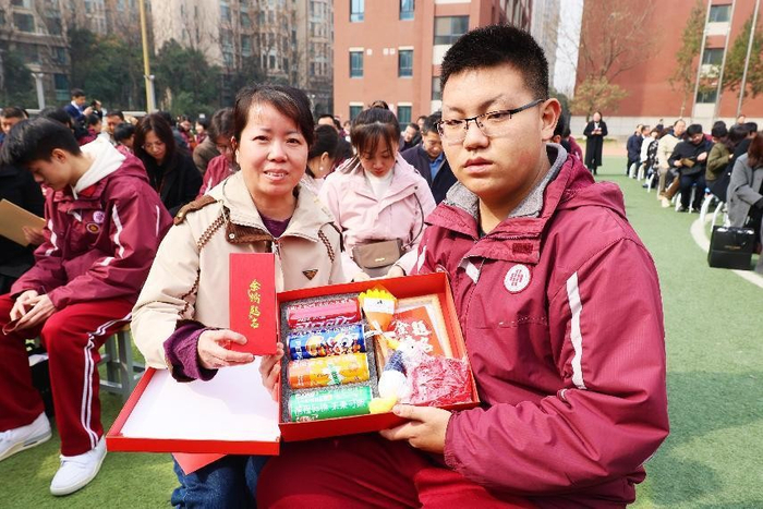 随后,高2025届家长为孩子戴上成人仪式纪念徽章。全体同学与父母互赠书信,一封封饱含温情的信笺让仪式现场洋溢着满满的感动与祝福。