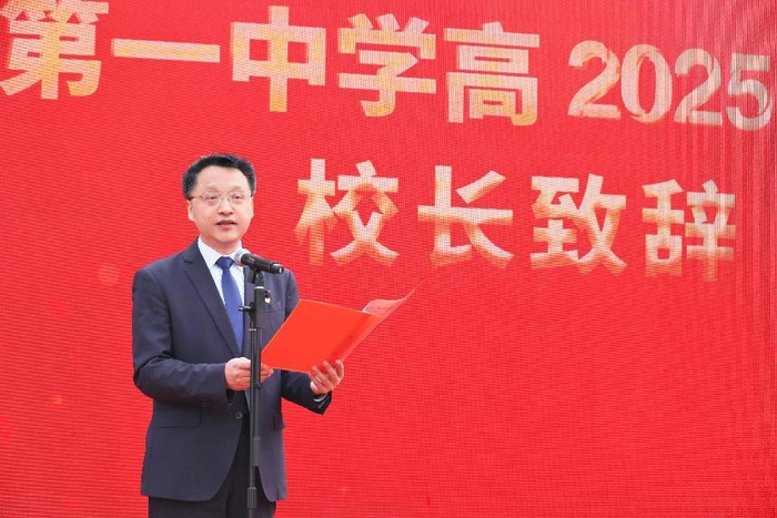 高2025届年级组长王海军代表全体教师为同学们送上爱的箴言。王老师希望每位同学都能成为新时代里有实力的、有行动力的、有情怀的“大写的人”,都能勇敢地推开十八岁的这道门,带上壮志与雄心,搭乘高考必胜的列车,去书写自己的精彩!