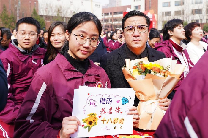 十八而志,青春飞扬;守正创新,未来可期。校长陈勇刚、副校长刘公潜为高2025届学生赠送金榜题名牌,祝福每位同学都蟾宫折桂,圆梦高考!成人仪式在同学们的欢声笑语中圆满礼成。