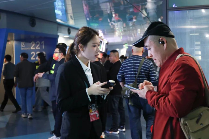 演唱会现场,也不乏外籍歌迷。据不完全统计,海外演出场次占梅奔中心全年近四分之一。场馆采用中英双语播报,并加入日文播报。自2022年起,梅奔中心推出微信小程序,支持在线点餐、失物招领等功能,未来将推出双语版小程序和AR/VR智能导航,提升外国观众体验。