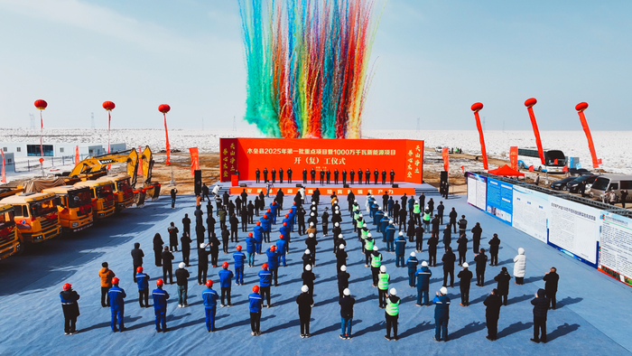 二月春风“拂锦绣”,百里沙场“启新程”。2月26日,木垒县2025年第一批重点项目暨1000万千瓦新能源项目开(复)工,正式奏响“千万千瓦级新能源攻坚战”的冲锋号角。