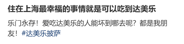 不少网友都喜欢吃达美乐,自称“乐门”信徒,还有网友衍生出达美乐指数,把城市分为容易点到达美乐的和其他城市。