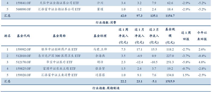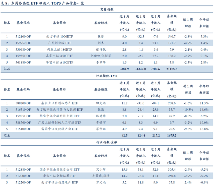 附录1:本周各类型ETF净流入TOP5产品信息一览