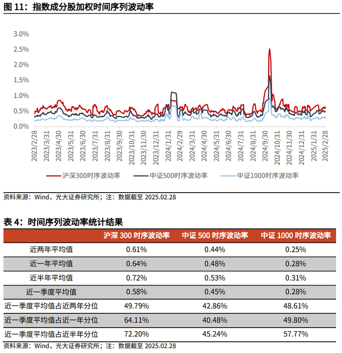 时间序列上来看,最近一周沪深300、中证500指数成分股时间序列波动率环比上周下降,Alpha环境减弱;中证1000指数成分股时间序列波动率环比上周上升,Alpha环境好转。