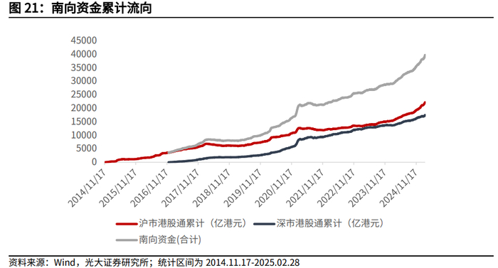 本周港股通交易区间为2025年2月24日-2025年2月28日,南向资金净流入749.67亿港元,其中沪市港股通净流入413.34亿港元,深市港股通净流入336.33亿港元。