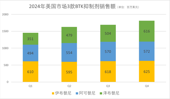 去年四季度泽布替尼在美国市场上已经超过了阿可替尼,逼近伊布替尼,只不过