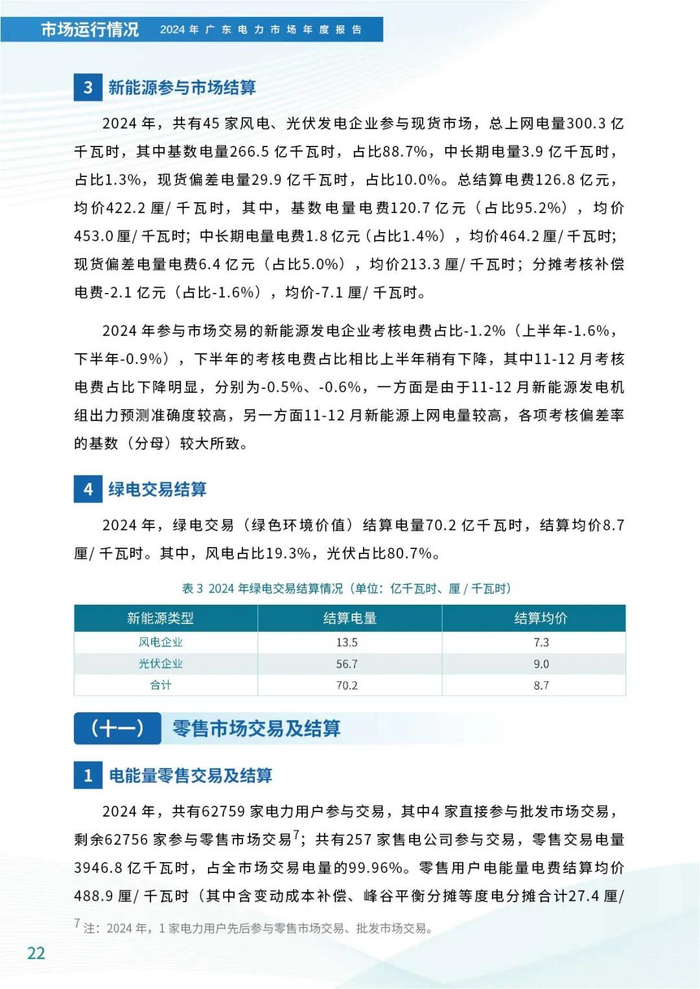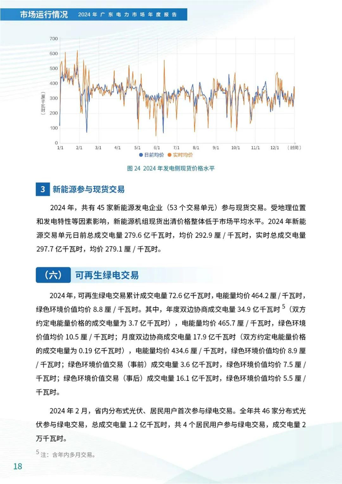 2024年,共有45家新能源发电企业(53个交易单元)参与现货交易总上网电量300.3亿千瓦时。