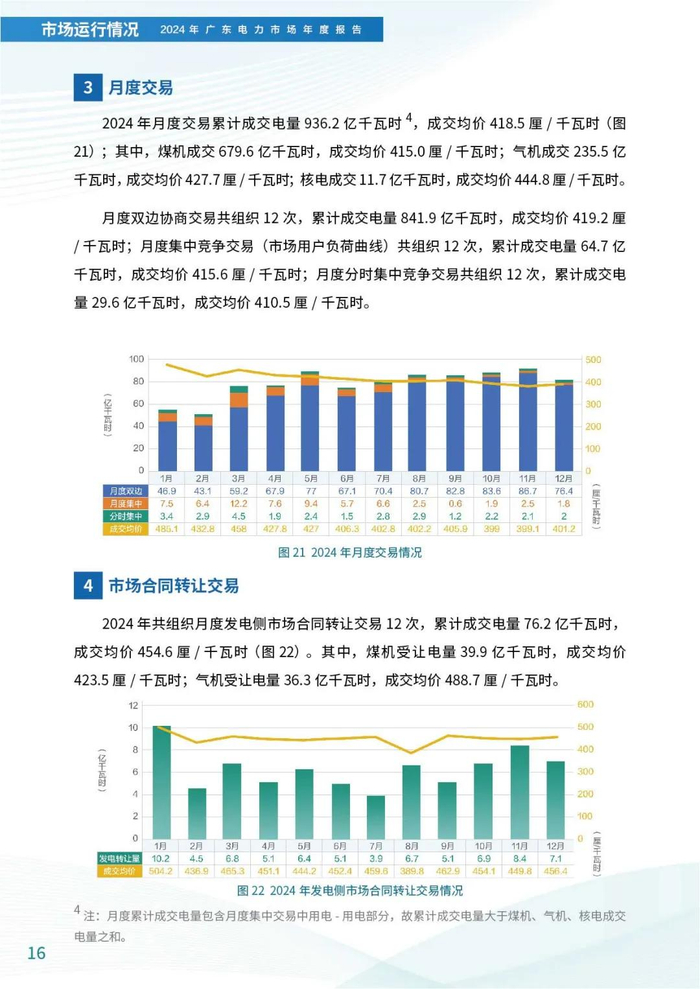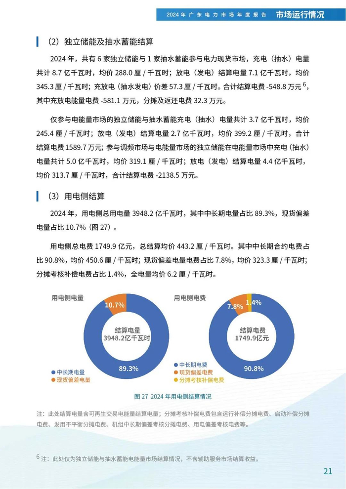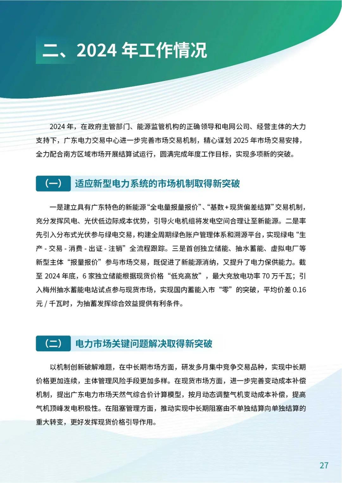 报告显示,2024年底完成的电力中长期交易中,2家独立储能企业成交年度双边协商交易,1家独立储能企业成交年度挂牌交易。