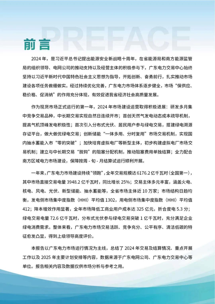 2024年,是广东现货市场正式运行的第一年,全年交易规模达6176.2亿千瓦时(全国第一)。其中市场直接交易电量3948.2亿千瓦时,同比增长25%;交易主体多元丰富,涵盖火电、核电、风电、光伏、新型储能、抽水蓄能等,全省市场主体近10万家;现货市场日前价格在0.068-0.525元/kWh之间波动。