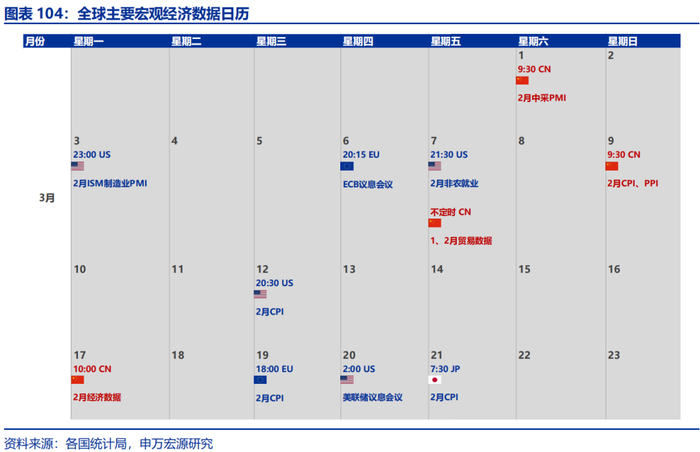 三、全球宏观日历:关注美国2月就业数据