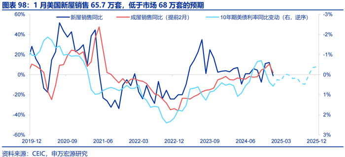 美国1月新屋销售量65.7万套,低于市场68万套的预期,也低于2024年12月销售量,反映前期美债利率高位。3月1日,美国政部长贝森特表示,“房地产市场现在陷入困境,但我预计楼市将在未来几周的某个时候解冻”,未来美国地产市场能否复苏要取决于长端利率下行空间。