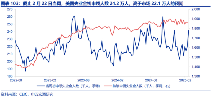 截止2月22日当周,美国失业金初申领人数24.2万人,高于市场22.1万人的预期,关注下周公布的美国2月就业数据。