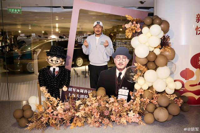 在上海大剧院,胡军“打卡”粉丝为他布置的应援物