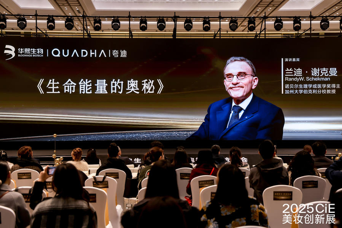 夸迪的新品“CT50超弹家族”系列产品,更是“请”来了诺贝尔生理学或医学奖得主兰迪·谢克曼教授助阵。据介绍,谢克曼教授已经加盟华熙生物,成为了夸迪新任首席科学顾问。发布会上,谢克曼教授首次披露与夸迪研发团队在皮肤抗衰领域的突破性研究成果。其团队通过分子生物学手段揭示“胶原蛋白与弹性蛋白协同作用机制”,证实二者共同构成维持皮肤弹性与紧致度的三维网状结构基础。与此同时,夸迪也对品牌战略进行了升级。