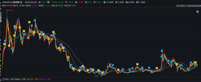 唐德影视成立于2006年,2015年2月在创业板上市,首发价格为22.83元。截至2025年2月27日收盘,公司股价10.35元,总市值47亿元,较历史高点蒸发逾百亿。