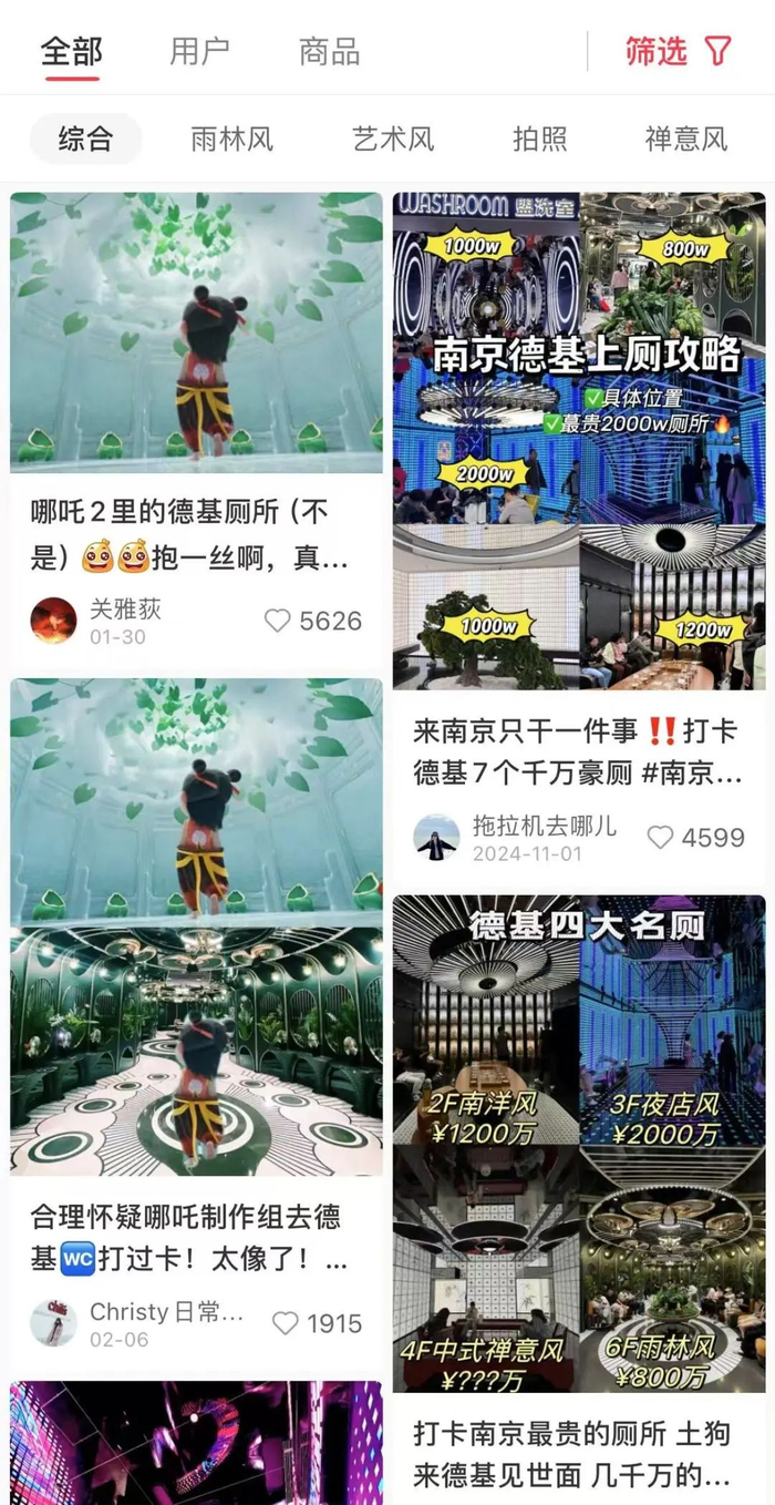 南京德基广场,因其造价千万的网红厕所频繁出现在小红书、抖音和微博等社交平台上被大众熟知。商场内的八大「名厕」也被网友戏称为南京的「必去 5A 景点」之一。