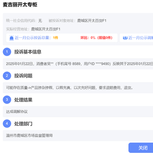 在此次投诉事件中,最终达成调解协议。温州市鹿城区市场监督管理局的介入,促进企业规范经营,营造健康的消费环境。