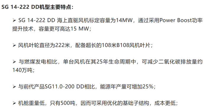 与此同时,SG 14.0-222 DD和SG 14-236 DD机组在2020年5月发布,样机于2021年12月在丹麦Osterild试验场进行测试,成为全球最早发布的超大型风机。