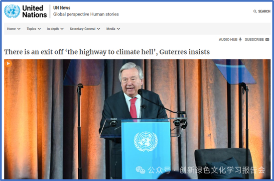 联合国秘书长古特雷斯说:“气温上升,绝大多数是由燃烧化石燃料引起的”“我们对化石燃料的依赖是一个弗兰肯斯坦怪物(Frankenstein monster,人类自己制造出来杀死自己的怪物),没有什么人可以躲过,任何地方都不会被放过。在我们周围,我们清楚地看到怪物已经成为主人。 最近背弃气候承诺的公司是“站在历史错误的一边”!