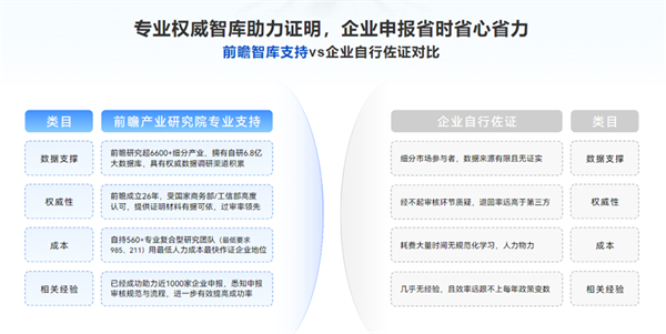 但需警惕申报材料审核趋严,前瞻产业研究院作为专业提供行业地位证明的智库,专业解决企业资质申报硬性指标,佐证细分市场领先地位,已助力500+企业单位获取“行业地位证明”,并成功作用于资质申报及市场应用。