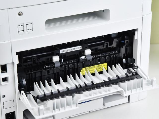 而在出纸方面,出纸托盘采用了可折叠的设计,不使用时可以将其进行折叠,进一步节省了空间。出纸托盘的标称容量为120页,完全可以满足日常的使用需求。