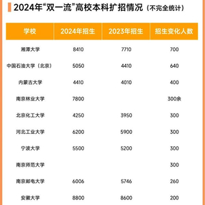 有媒体统计发现,2024年超60所“双一流”高校都增加了招生计划,其中近半数“985”高校宣布扩招。