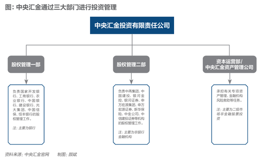 中央汇金的投资主要集中在金融领域。根据中央汇金组织架构显示,中央汇金通过股权管理一部和股权管理二部对持有的国有金融机构股权进行直接管理。