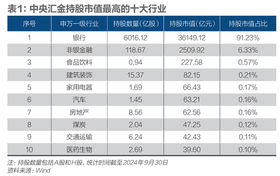 从二级市场投资来看,A股金融业仍是中央汇金及其子公司汇金资管的重仓行业。银行股更是其投资的重中之重。