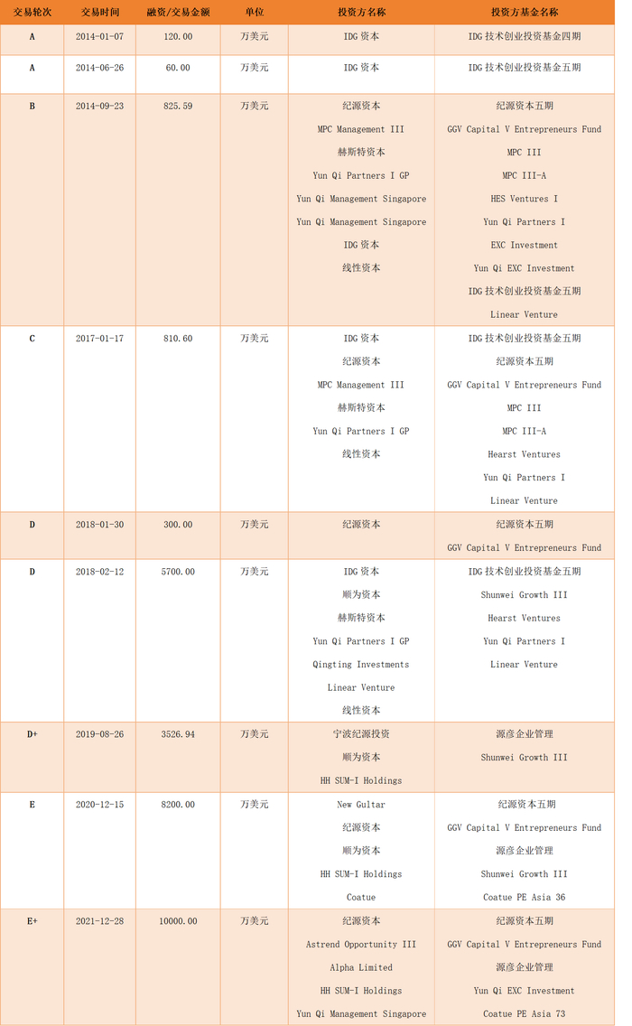 下面我们先来看看这5家公司的融资情况,数据来自CVSource投中数据。