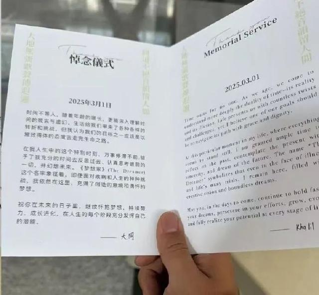 在方大同悼念仪式上,他留给世界最后的话也随之曝光: