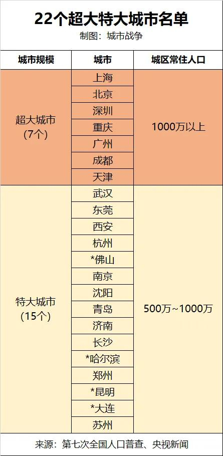 7个超大城市,15个特大城市
