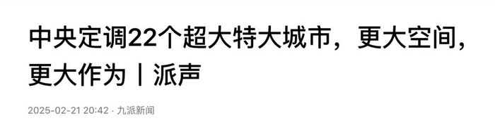对此,媒体报道称中央定调22个超大特大城市,更大空间,更大作为。
