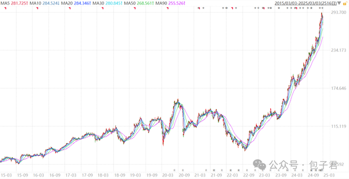 这里要纠正很多媒体的一个说法,不少媒体说德国股市近些年表现主要靠SAP、西门子能源和莱茵金属三家公司,这种说法并不很准确。尽管军工股莱茵金属股价表现很出色,莱茵金属在德国DX指数中的权重很低,对德国DAX指数的涨跌影响很有限。