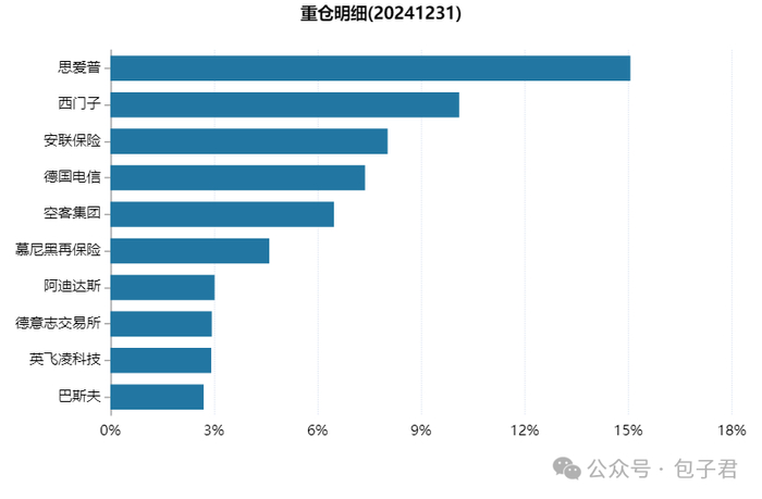 这里就需要看一下德国DAX得主要成份股了,我们可以通过德国DAXETF持仓窥见一二。